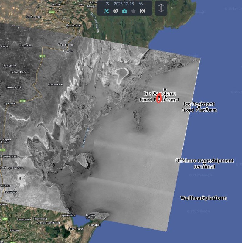 Sentinel-1A satellite radar image acquired on 09/19/2025 03:00:07 UTC (05:03:07 Moscow time).