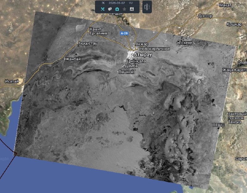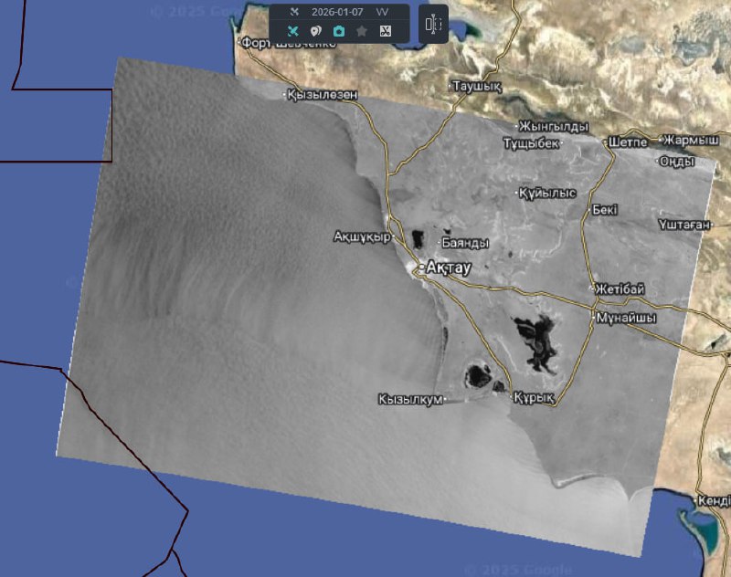 Радиолокационное изображение спутника Sentinel-1A получено 07.01.2026 02:43:48 UTC (05:43:48 мск).