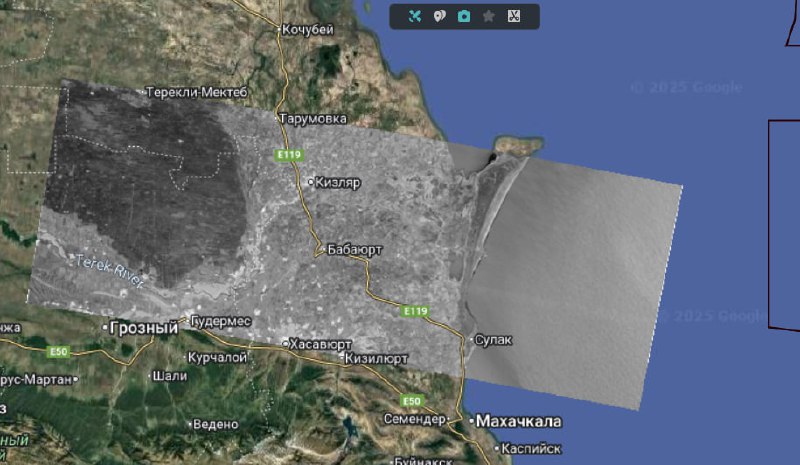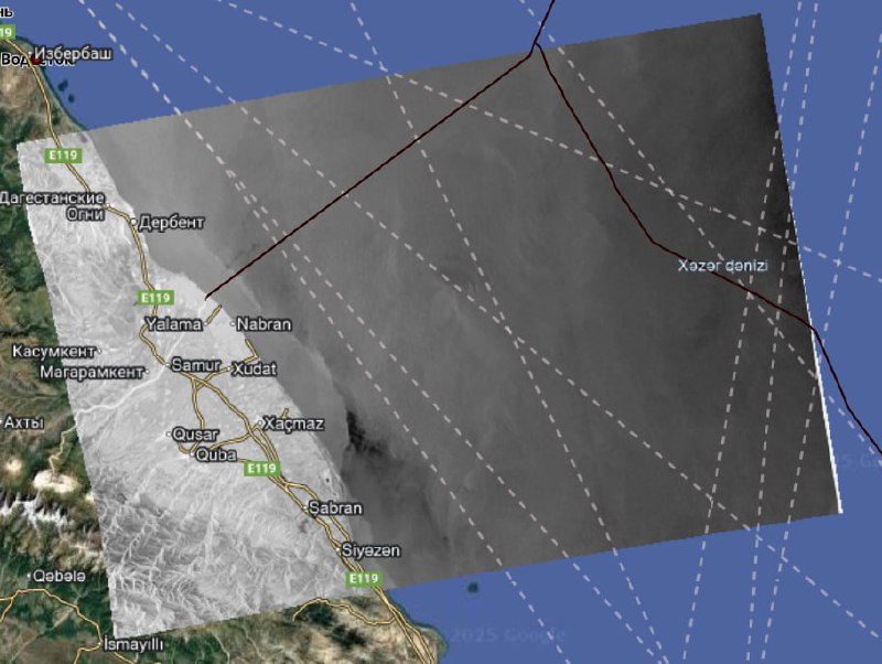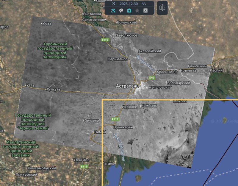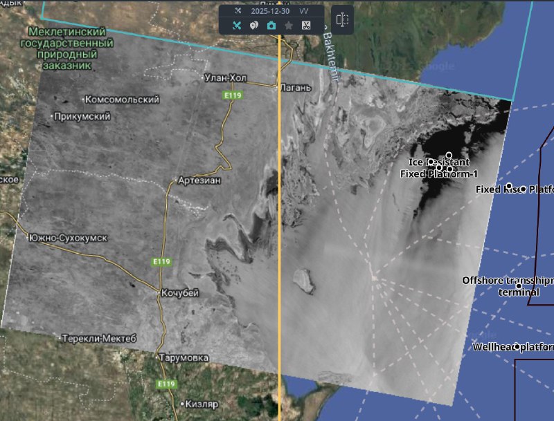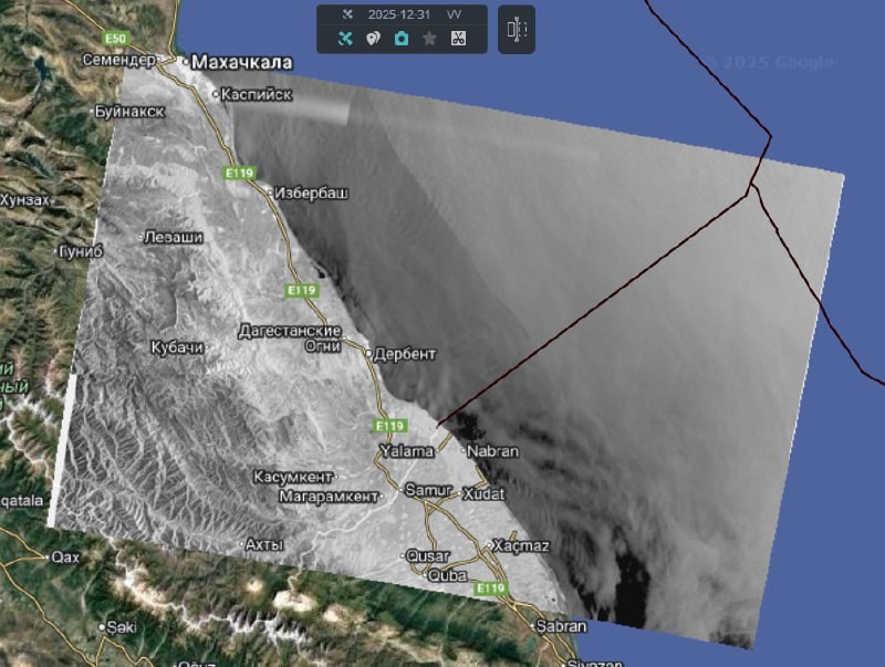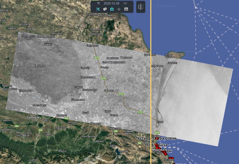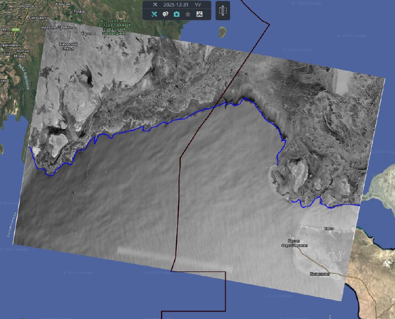 Радиолокационное изображение спутника Sentinel-1А получено 25.12.2025 14:30:24 UTC (17:30:24 мск).