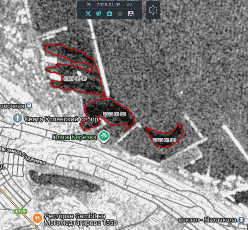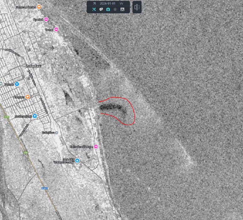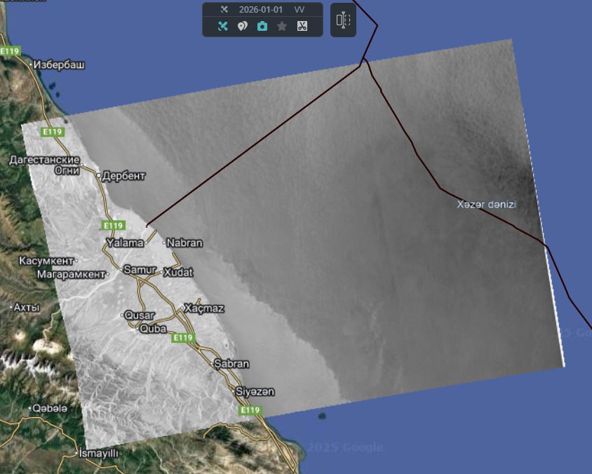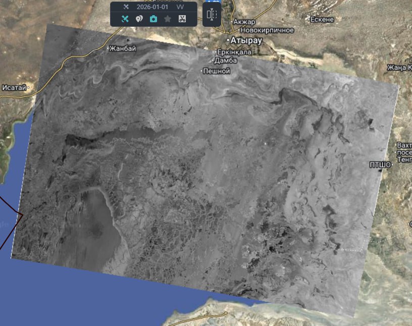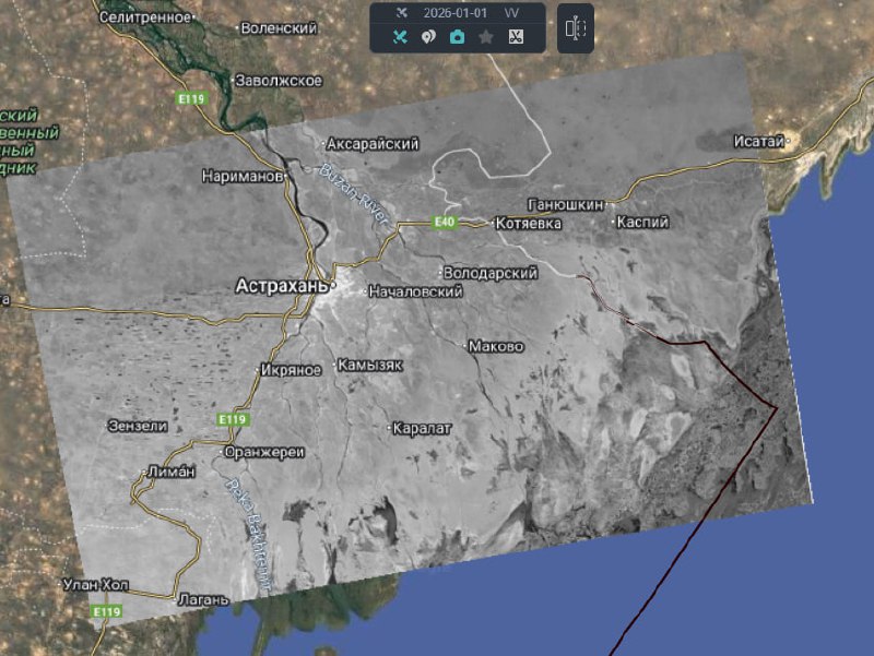 Радиолокационное изображение спутника Sentinel-1A получено 01.01.2026 02:41:37 UTC (05:41:37 мск).