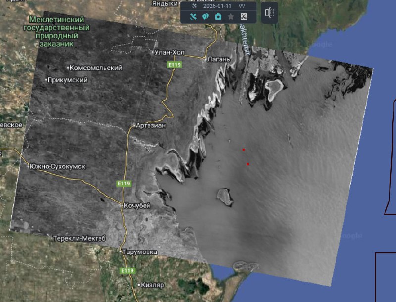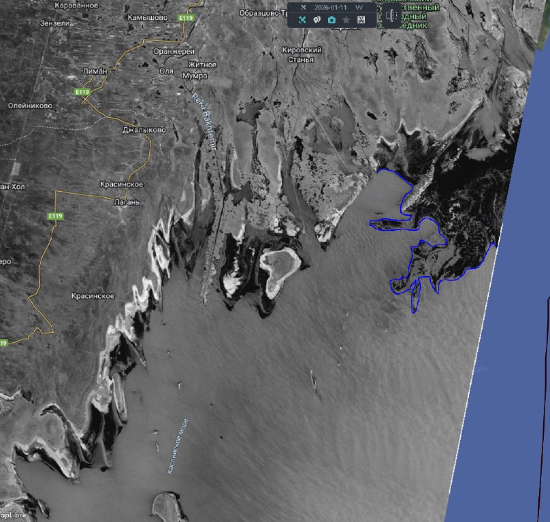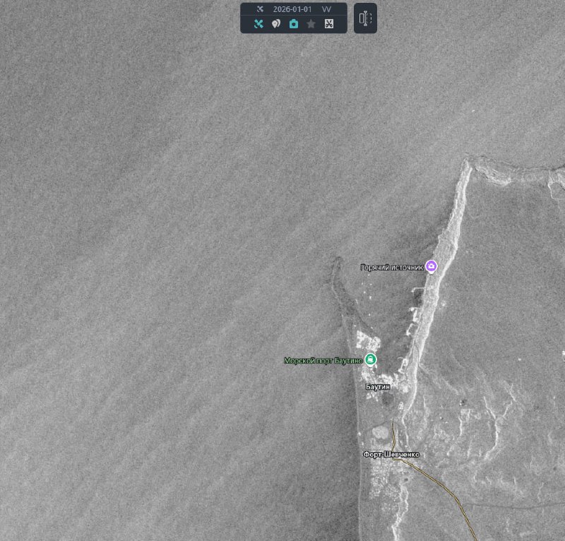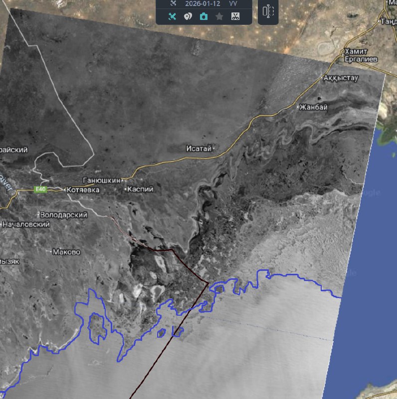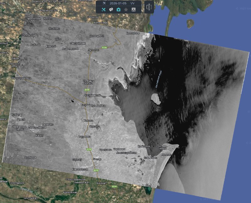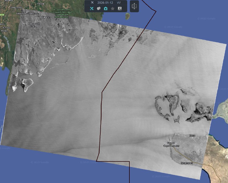 Радиолокационное изображение спутника Sentinel-1C получено 11.01.2026 02:58:04 UTC (05:58:04 мск).