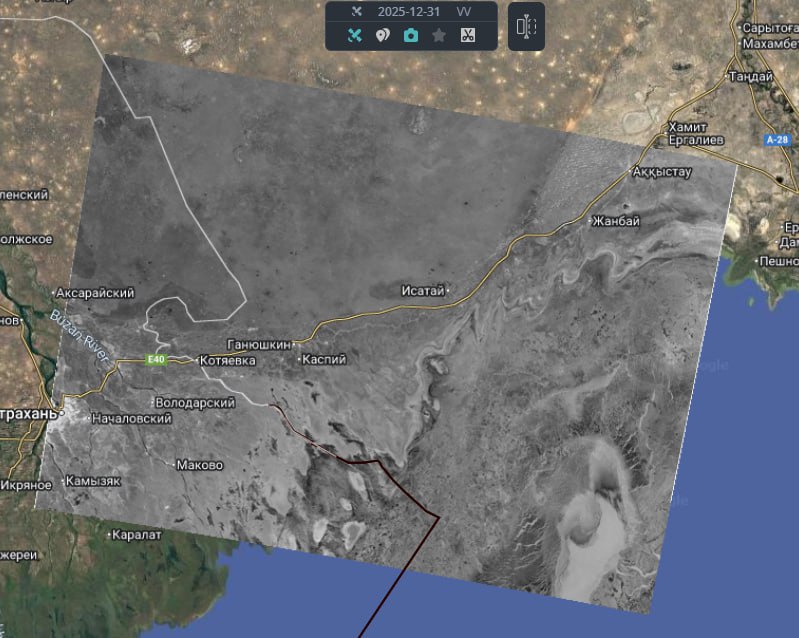 Радиолокационное изображение спутника Sentinel-1A получено 31.12.2025 02:50:42 UTC (05:50:42 мск).