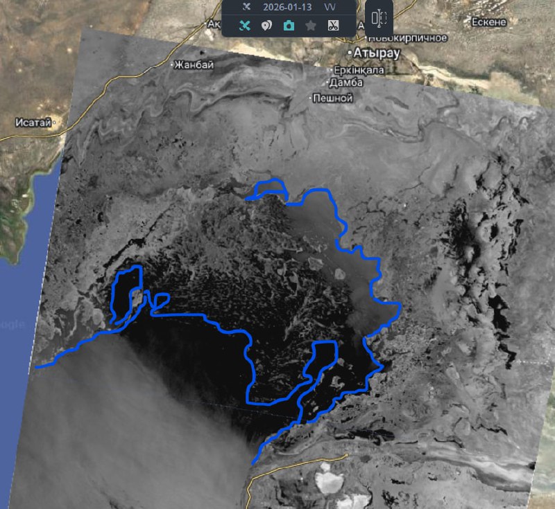 Радиолокационное изображение спутника Sentinel-1A получено 13.01.2026 14:38:57 UTC (17:38:57 мск).