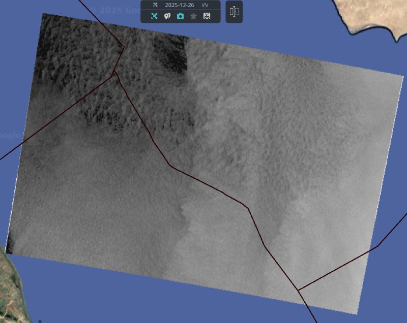 Радиолокационное изображение спутника Sentinel-1C получено 26.12.2025 02:42:30 UTC (05:42:30 мск).